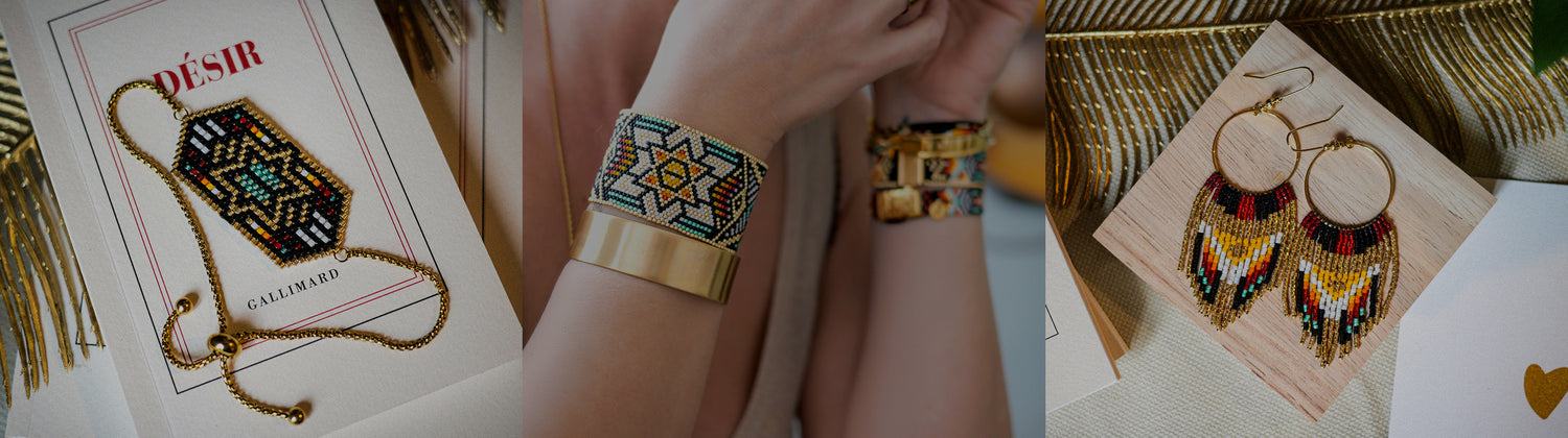 Bienvenue sur la boutique en ligne de Perlarium Bijoux, marque de bijoux tissés en perles Miyuki, fabriqués à la main dans notre atelier français, à Nantes. Toutes nos créations sont inspirées de style bohème, ethnique, toujours très colorées, pop ou graphique, et surtout fabriquées avec ❤