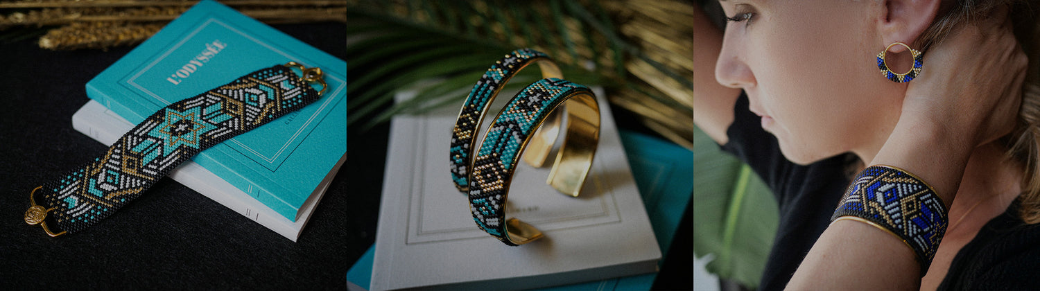 Découvrez la collection Majorellle : des bijoux en perles tissées mariant l'opulence du doré...
