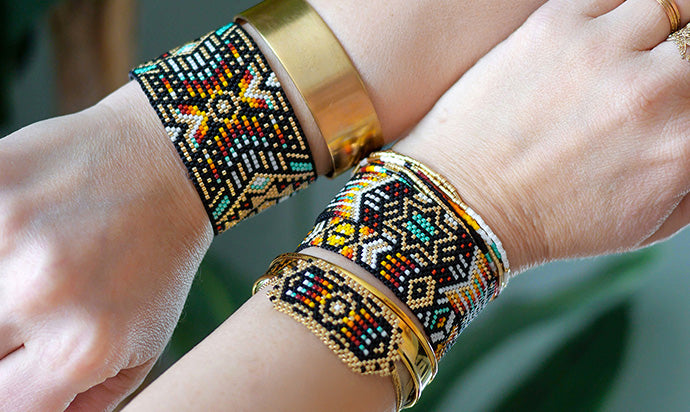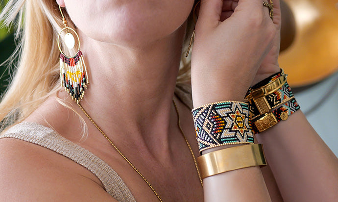 Le style ethnique est un style très coloré, qui fait référence à des motifs, qui chez Perlarium, évoque la culture et le style améridien. Des couleurs vives et le fameux or des incas. C'est un style souvent associé au style boho chic, pour des looks super tendances.