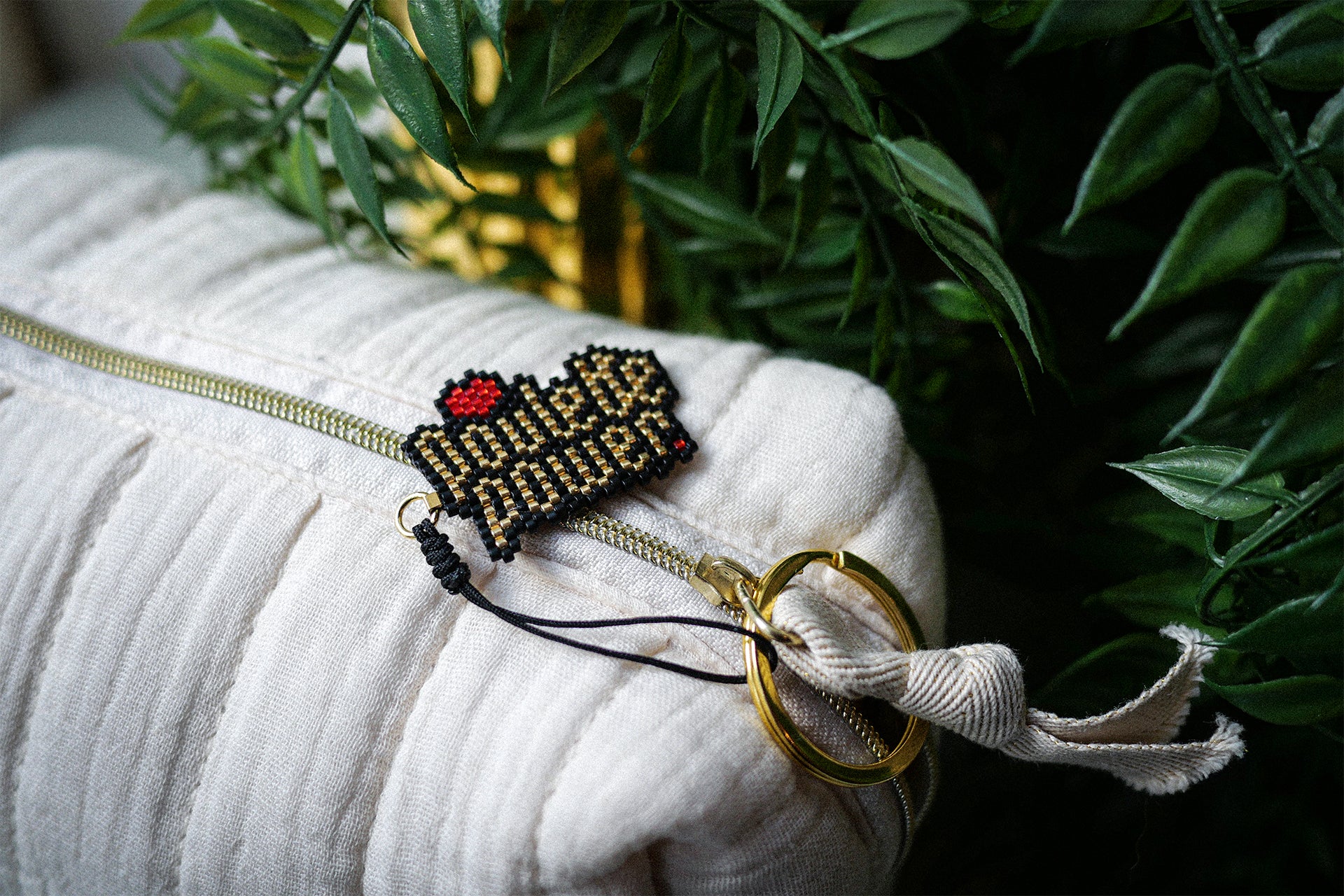 Le Charm Poulette Power, c’est la petite touche qui fait sourire : un mini tissage en perles Miyuki, accroché à une élégante cordelette et un anneau doré.